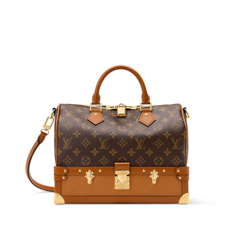 The original Speedy 30 was designed to celebrate freedom of expression and travel, and this Out Of The Trunk edition is no exception. It honors archival Louis Vuitton luggage with its sturdy leather base and metallic corners, while the upper half showcases the House’s signature Monogram pattern. Sized to fit the essentials, it also includes a flat pocket on the inside.