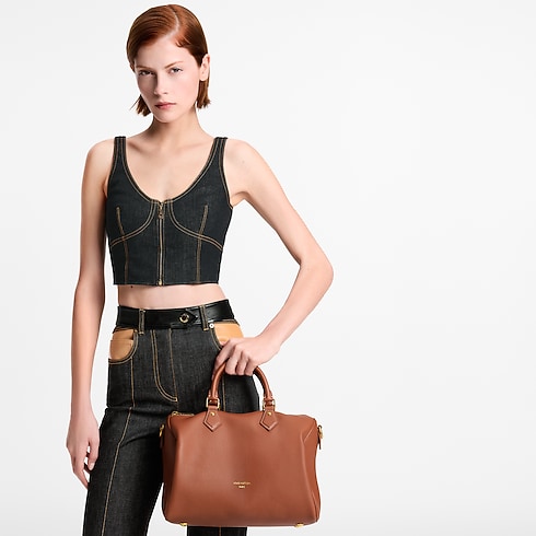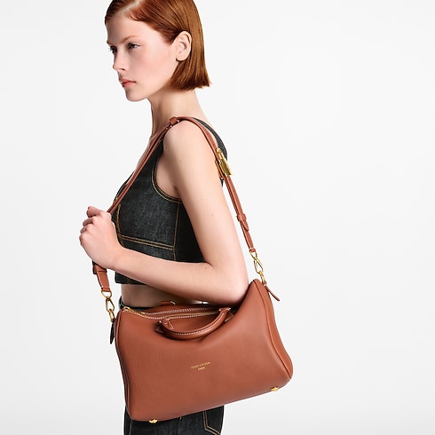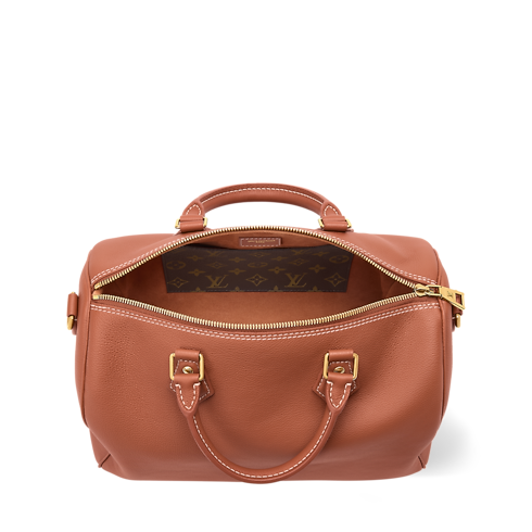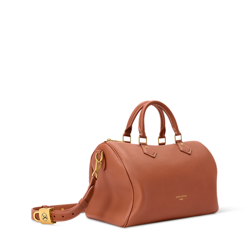 The perfect travel companion, this Low Key edition of the Speedy Soft 30 is crafted from supple calf leather in a timeless shade. Adorned with a signature LV padlock in a aged gold-toned finish, this sleek design comes with a removable strap for multiple carry options. It is sized to fit everyday essentials and includes a flat pocket on the inside.