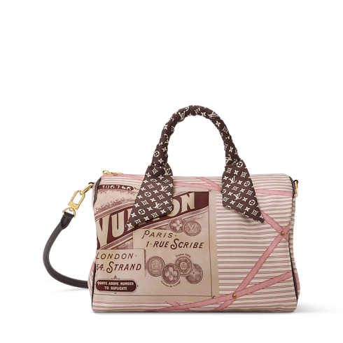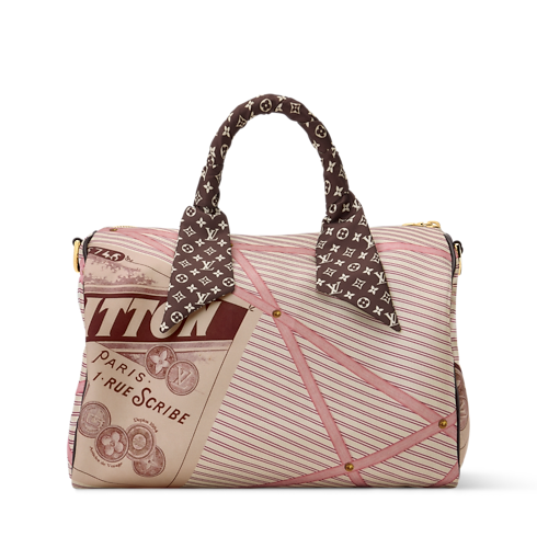 This edition of the Speedy Soft 30 is part of the Inside LV animation, showcasing a colorful blend of textile trims and prints to create a truly unique design. It is topped with a Monogram-patterned handle, and also comes with a detachable strap for shoulder carry. Generously sized, it can fit a tablet inside as well as other everyday essentials.