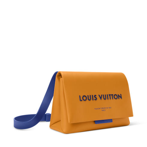 The Take Out Messenger, in saffron cowhide leather, features the iconic contrasted embroidered LOUIS VUITTON signature and joins the LV Packaging collection. Compact yet stylish, it offers just the right amount of space with a tone-on-tone lining and two flat pockets. A long strap allows for shoulder or cross-body wear.