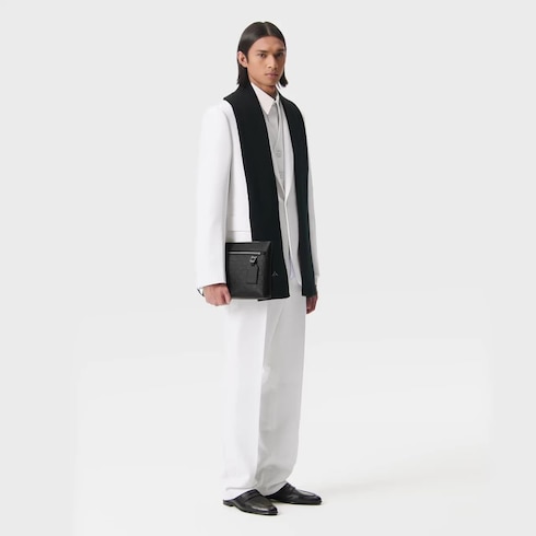 The Takeoff Pouch is made from Damier Infini leather with black-color zippers on the front pocket and top. Large enough to carry an iPad, this small bag is perfect for more formal occasions. A leather name tag on a small D-ring on the front pocket contributes to the overall impression of modern luxury.