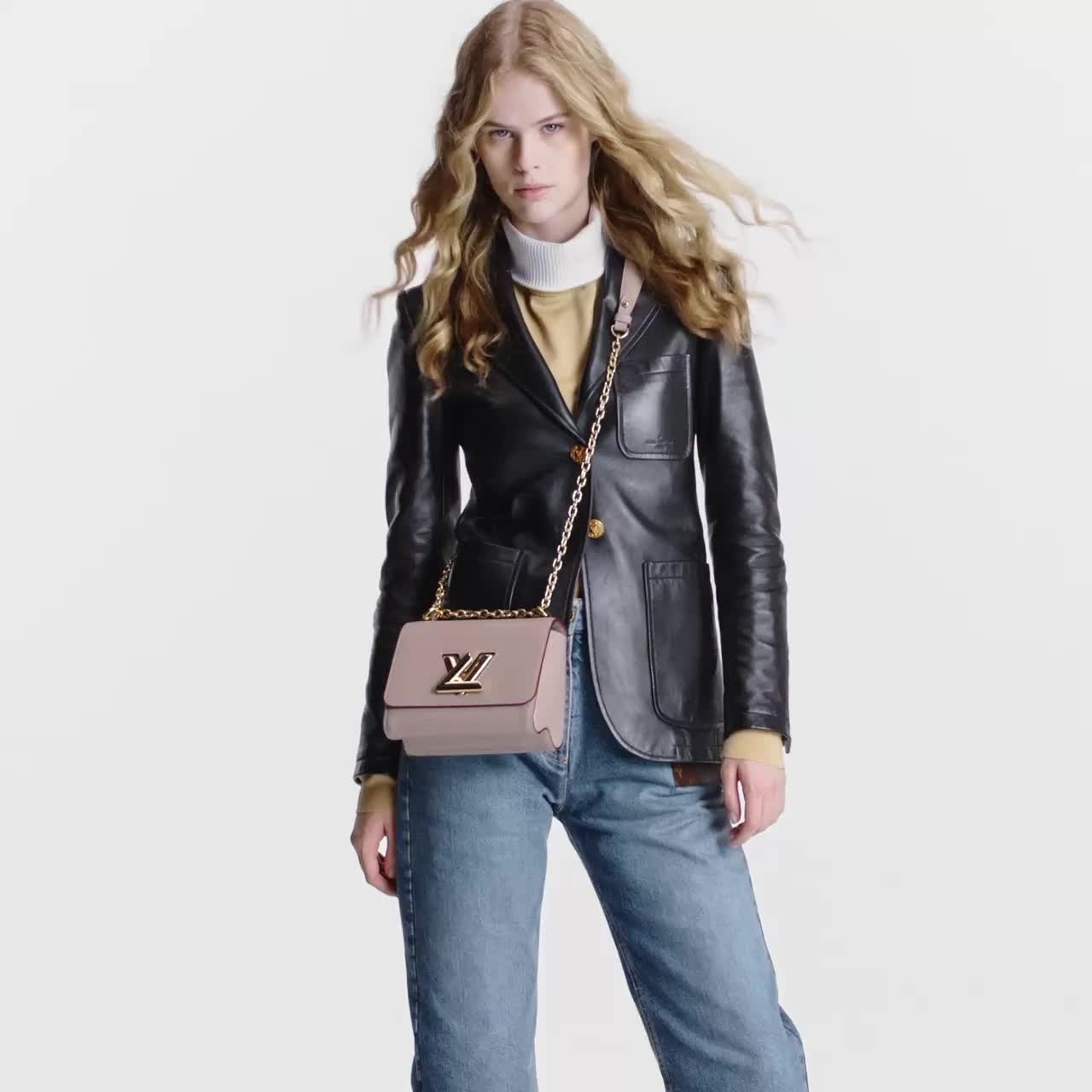 Made from Epi leather and accented with the gleaming gold-color LV Twist lock, this Twist PM hand bag now comes in an essential new color that’s easy to match: a warm and elegant gray. This compact bag is unexpectedly roomy thanks to its cleverly designed “wave” base.