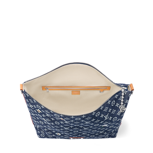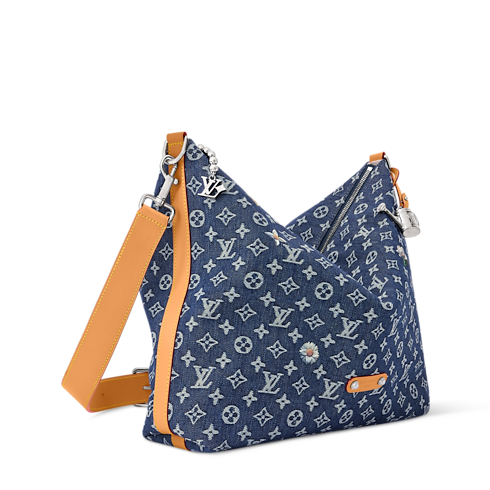 Monogram Flowers Denim brings an on-trend feel to the Vagabond Hobo bag. Its jacquard base weaves the Monogram directly into the fabric, creating a textured white-and-indigo pattern, enriched with floral embroidery and printed accents for added depth. Designed for cross-body or shoulder wear, the body-friendly shape blends comfort with practical elegance.