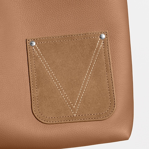 The Verso Hobo in LV Touch calfskin leather blends style and versatility. Its reversible design offers two distinct looks: smooth grained leather on one side, and matching-colored suede on the other. Each side features a pocket with a discreet stitched V signature, while a removable suede pouch adds extra functionality.