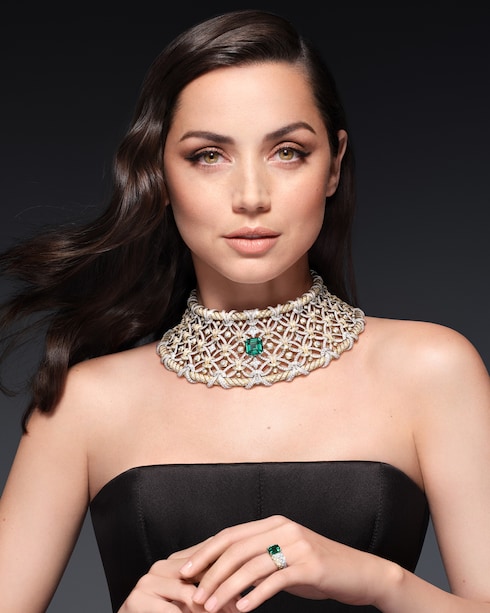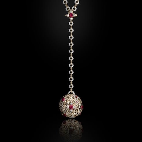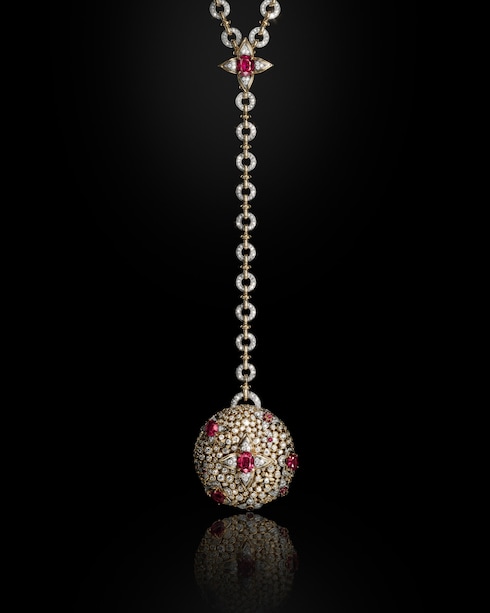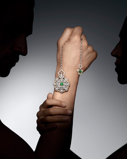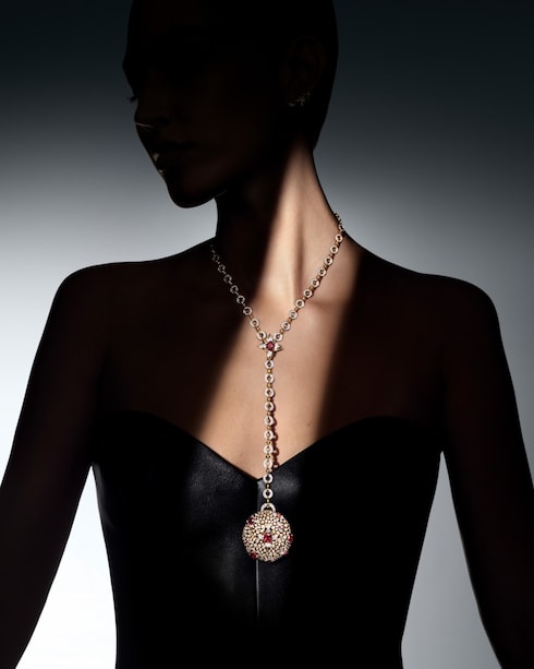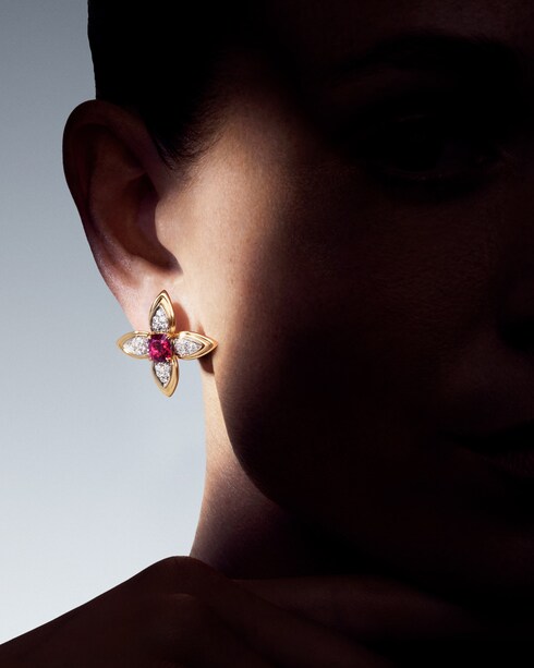 Emulating the contours of ornate imperial interiors, Splendeur masterfully reimagines floral woodwork in an ode to the iconic Monogram Flower. Set with a vivid display of over 110 rubies, the exquisite jewellery pieces boast a charismatic decadence — showcased by a spectacular setting, amongst the largest arrangement ever featured on one creation.