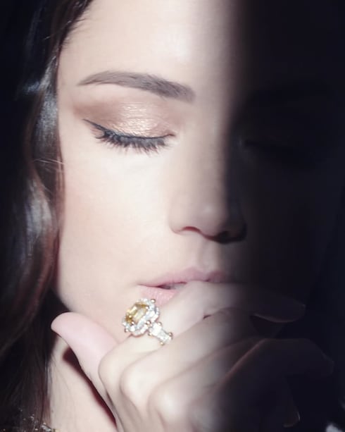 Interlaced V-shaped links are revisited with luxurious rivets reminiscent of the Maison's trunkmaking codes — crafting enveloping pieces, accentuated by opulent golden yellow sapphires.