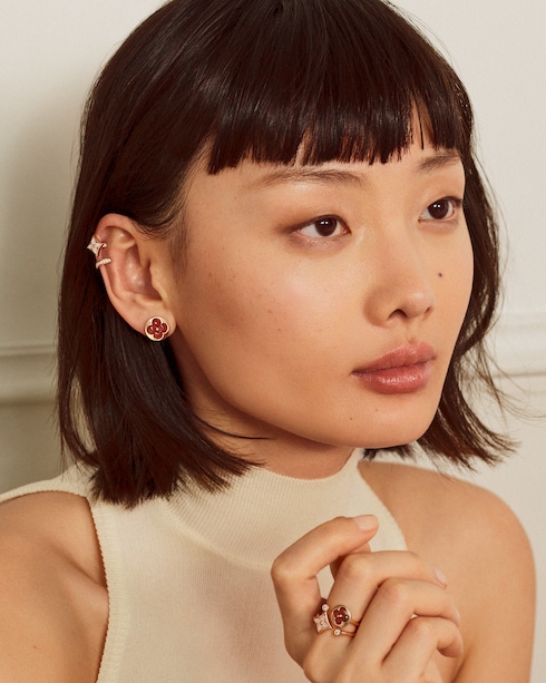 Conceived as a field of composition, the collection explores a refined dialogue of stones, volumes, and light. Offered in two Monogram Flower motifs and a palette of seven coloured gems, each creation exudes an expressive harmony.