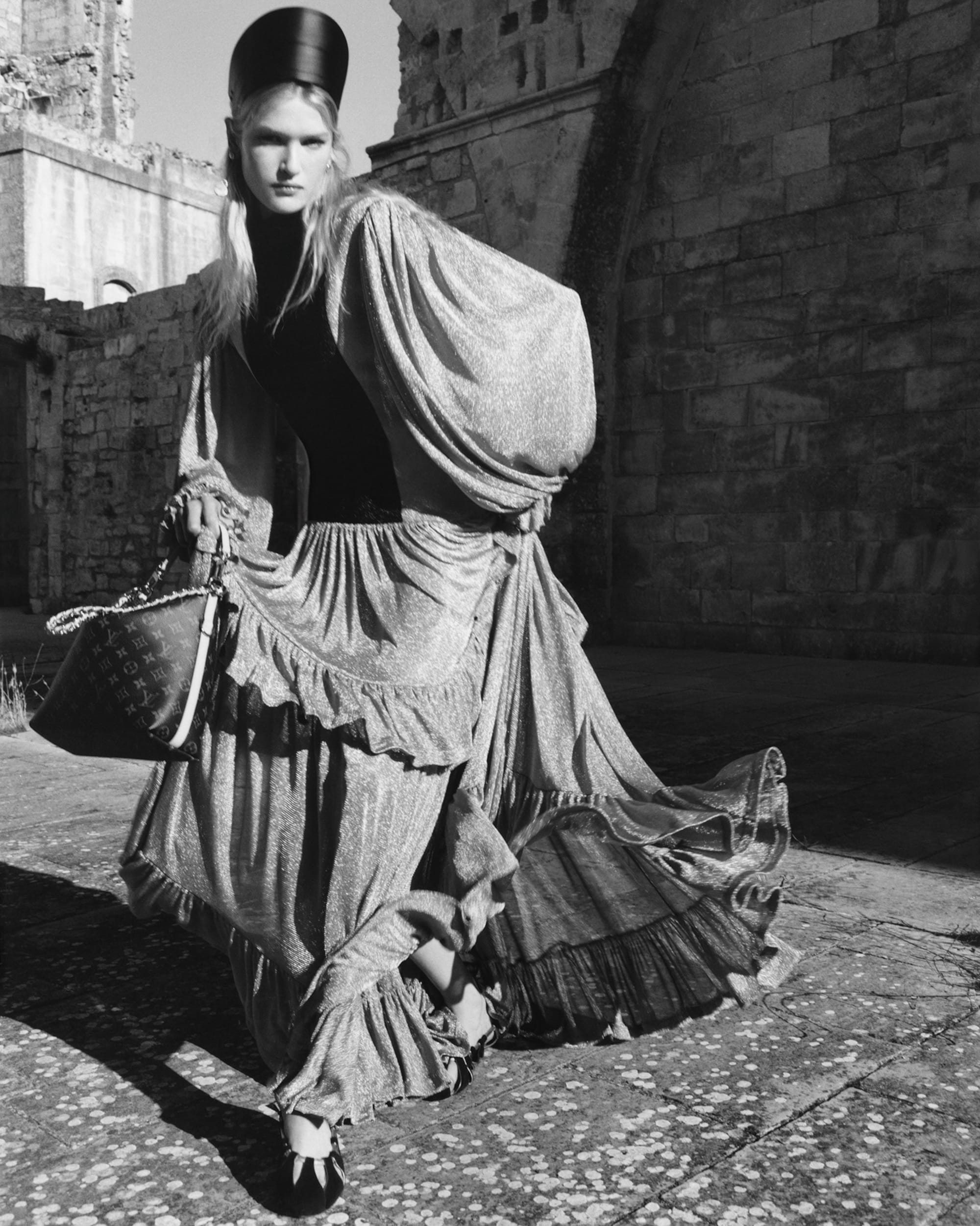 In a radiant clash of centuries, the majesty of the Middle Ages converges with the dazzling defiance of glam rock for Nicolas Ghesquière’s Cruise 2026 Collection.