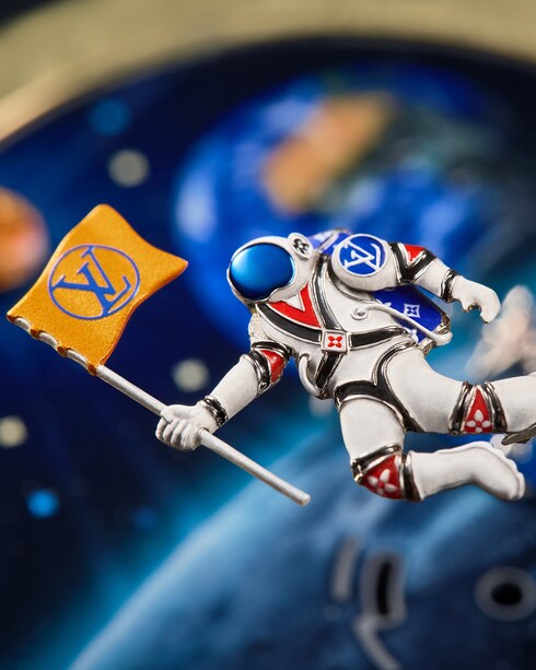 Louis Vuitton embarks on an interstellar odyssey with the Tambour Taiko Galactique – an invitation to explore space in an ode to the House’s spirit of travel. Powered by the in-house LFT AU14.02 caliber, the timepiece combines a minute repeater and an automata mechanism, enlivening the dial through seven mesmerizing animations. Within a futuristic Tambour Taiko case, meticulous enameling and engraving are united with a mechanical movement, showcasing the exceptional savoir-faire of the artisans at La Fabrique du Temps Louis Vuitton.