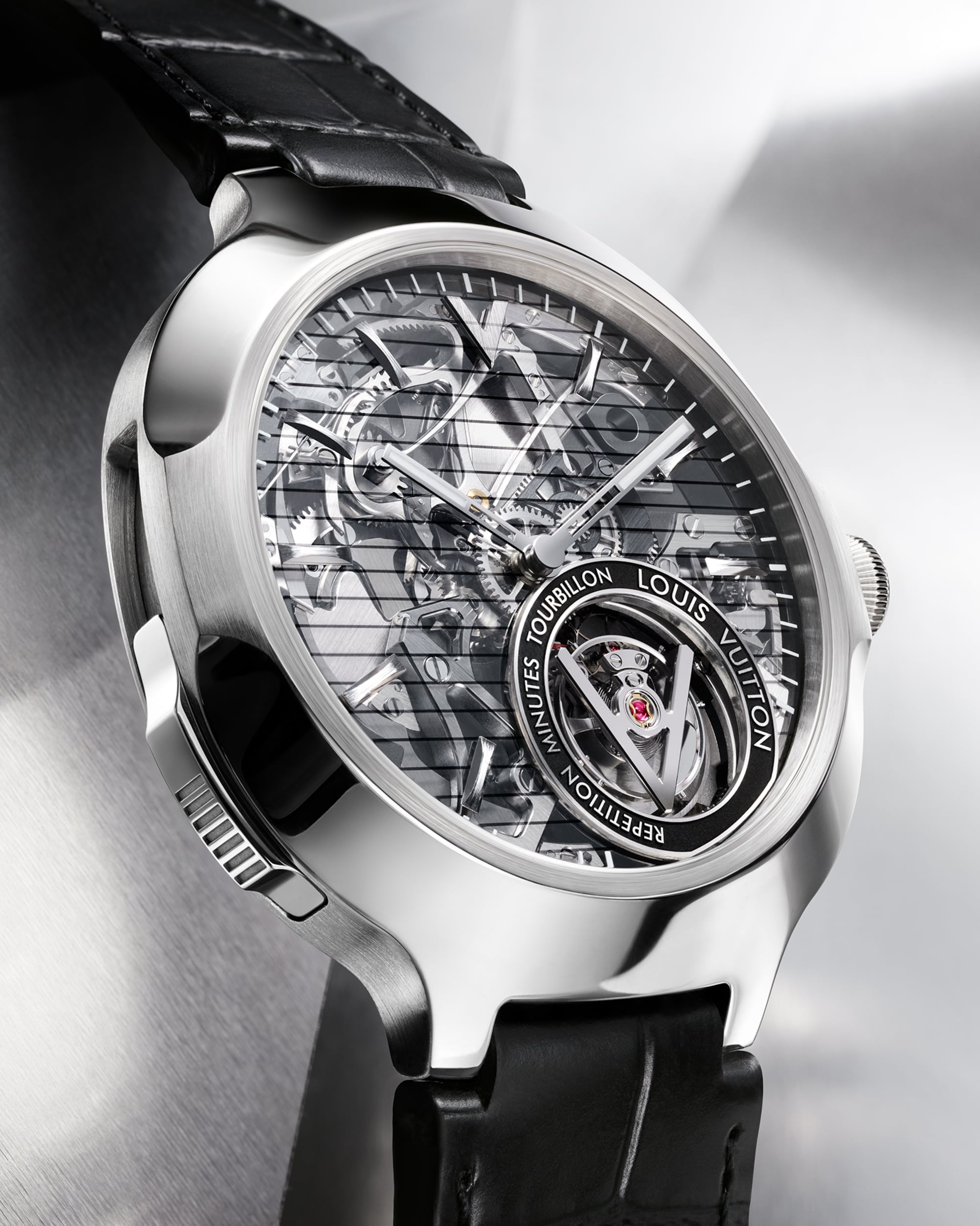 Bringing together two worlds of truly modern design and time-honed craftsmanship, this exceptional timepiece places two icons of high watchmaking at center stage: a Flying Tourbillon escapement and a striking mechanism known as a Cathedral Minute Repeater.