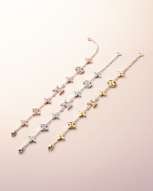 Capturing the graceful beauty of the iconic Monogram, bracelets delicately punctuate the wrist with a supple allure — magnified with diamond detailing.