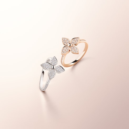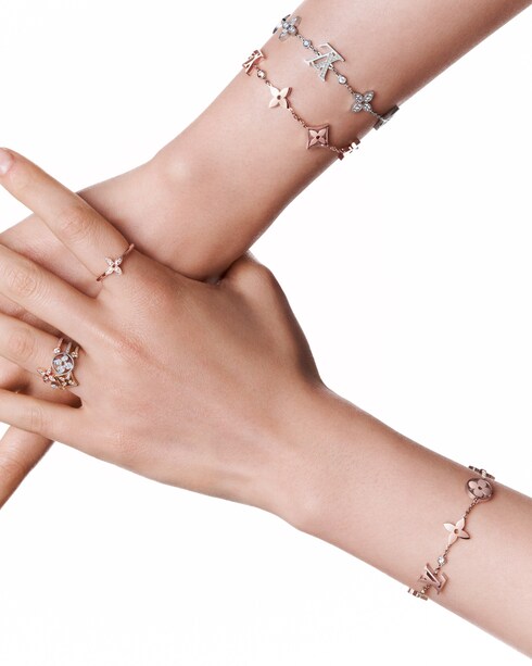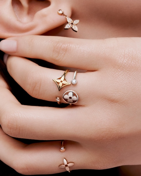 Imagining a myriad of stylistic variations, the Louis Vuitton Idylle Blossom pieces come in rose, yellow, and white gold, enhanced by dazzling diamonds. Worn alone or stacked together, these delicate creations bring the House's emblematic signatures to life.