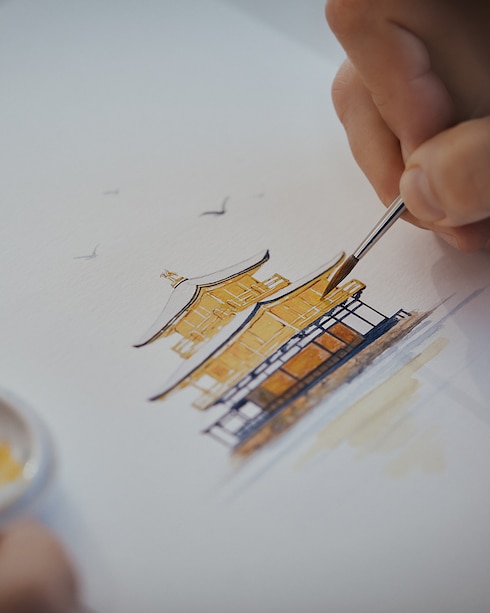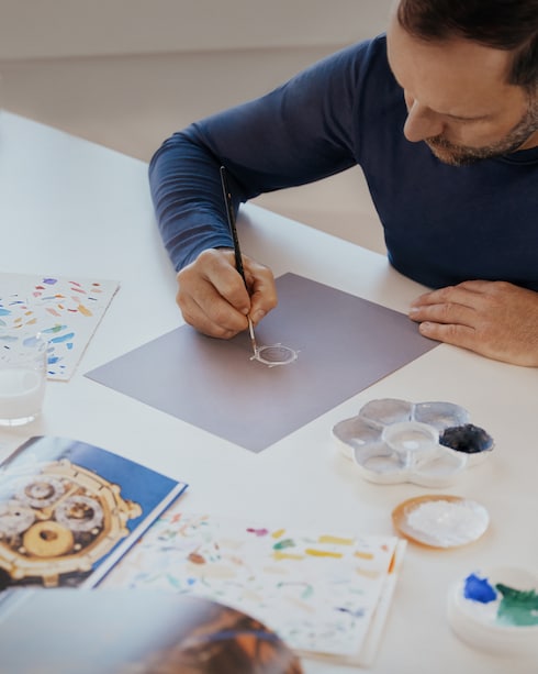An idea begins with a pencil sketch, which is then brought to life through a more vivid depiction in gouache or watercolour. Each curve, shape, and nuance is then tirelessly refined, gradually revealing the silhouette of a new watch creation. At this moment, time takes on another dimension and gives way to 3D modeling — the beginning of a journey between tradition and modernity, artistic expression, and technical rigor, until the final piece is unveiled.