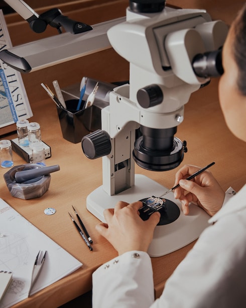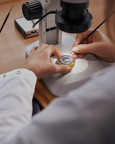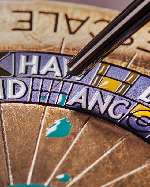 Illustrating exceptional expertise and precision, miniature painting work magnifies the meticulous scenes of the dial through absolute mastery of the brush — adorning a single hair less than a tenth of a millimeter thick. By selecting the most expressive colour palette, the craftsman exalts the nuances of a highly creative vision with unparalleled patience and attention to detail.