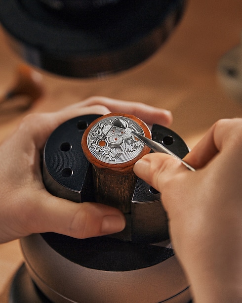 In the expert hands of skilled artists, engraving becomes a form of artistic expression, where the tracing of fine lines, proportions, and shapes with nuanced shading give life and depth to the decoration of the dials, cases, and movement components. To carve the metal and achieve the painstaking level of detail required for this traditional technique, the master engraver uses numerous tools, such as the chisel. The intricately engraved motifs become timeless works of art, testifying to the subtle marriage between artisanal tradition and creative aesthetics in the world of watchmaking.