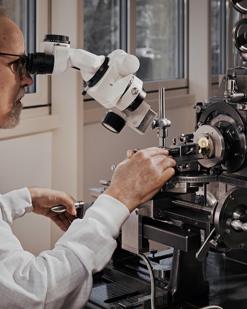 A traditional technique of decorative engraving on metal, guilloché reveals the perfect harmony between hand and machine. With the utmost dexterity, the master guillocheur guides the machine to produce linear or geometric patterns of incomparable finesse and consistency, creating subtle plays of light. These distinctive graphic accents are the hallmark of the Manufacture's refined watchmaking creations.