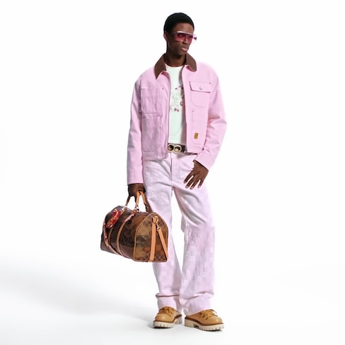Skate pants berbahan denim ini menampilkan motif Damoflage Sakura dari koleksi Fall-Winter 2025 dalam jacquard bertekstur yang memikat. Desainnya yang bernuansa pink seperti bunga sakura merefleksikan kolaborasi Louis Vuitton di musim ini bersama Nigo, desainer asal Jepang. Kreasi musim panas yang bergaya kasual ini disempurnakan patch Marque L.Vuitton Déposée berbahan nubuck leather pada bagian saku tiket, sementara Mini Damier jacqueron terlihat di bagian belakang.