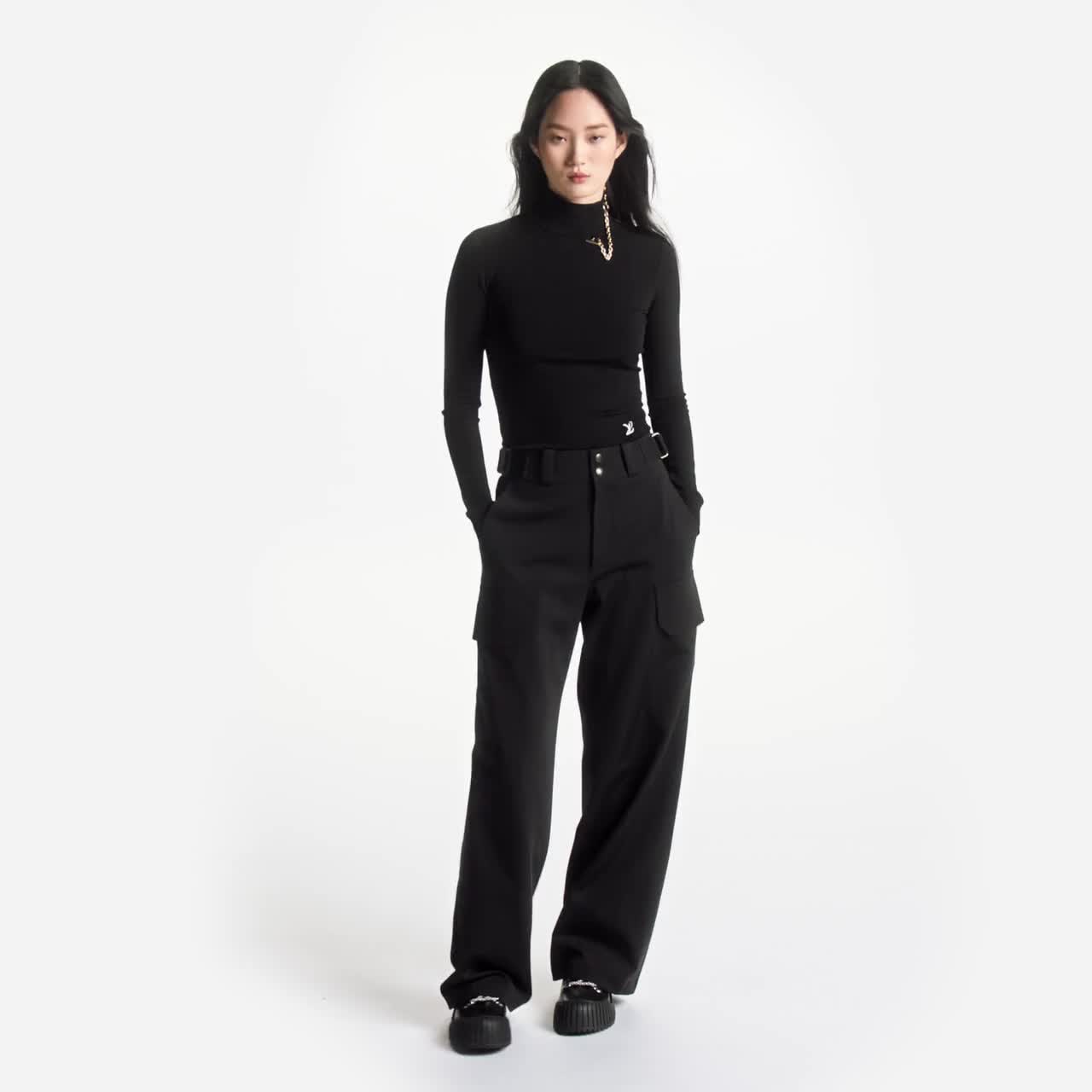 Pakaian esensial yang harus dimiliki kali ini dibuat dengan ekspresi gaya yang berbeda. Sweater turtleneck ini dikembangkan lagi dengan golden zipper terbuka asimetris yang ditarik serta dilengkapi dengan desain rantai yang melingkari kerah baju dengan elegan. Dibuat dari knit stretch halus dalam setelan dalam material kulit yang nyaman. Kontras Inisial LV melengkapi penampilan.