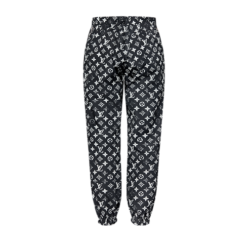 Busana kasual ini menggabungkan kesan sporty dengan signature grafis Louis Vuitton. Dibuat dari bahan technical fabric, busana ini dihiasi dengan motif Monogram yang ikonik milik Rumah Mode, yang diperbarui dengan efek stensil unik. Detail termasuk tutup kait, pergelangan kaki dan pinggang elastis, serta dua saku beritsleting di bagian samping.
